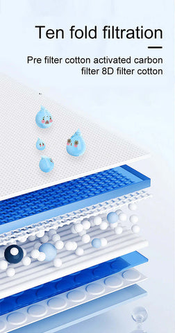 đșăQuadruple Filtration & Cleaner Wateră The pet water fountain is equipped with replacement filters to remove dirt, food particles, the pre-filter sponge to catch the hair and debris, keep the water clean, and fresh, provide healthy and hygienic water for your beloved pets all day!