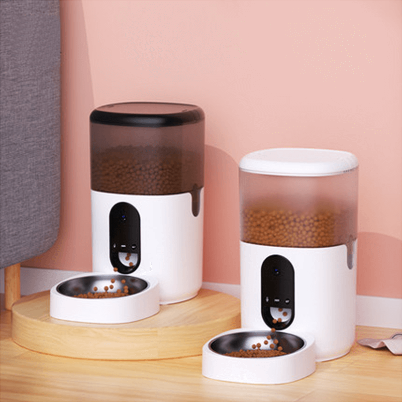 1:Right Portions at the Right Time: automatic dog feeder : meals daily with 1-50 portions(15ml each), Large food tank with 4L capcity. Equipped with anti-stuck function, no more pre-dawn wake up calls, or worry when travelling