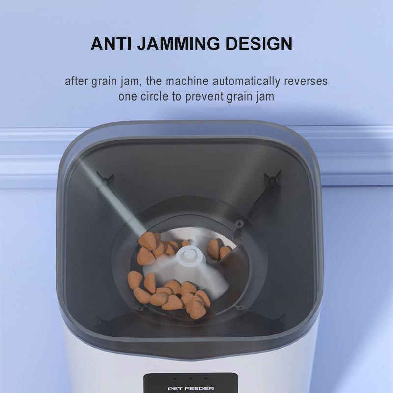 4:Pre-meal Voice Reminder: Press and hold the voice recording button on the pet feeder panel to create your own 10s personalized voice recording that calls your pets when food is dispensed, letting them know when it's time to eat. A familiar voice can also make pets who are left alone feel safe and cared for.